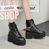 À grosses chaînes plates-formes, craquer pour les cuissardes qui sont des Bottines à bout rond de Martin Hiver noir punk gothique. Acheter une paire de bottines à la fois de moto et de chaussures de sport compensée et confortable noirs, ainsi que des produits de cuir noir, fourrée, associé de velours de couleur noire.